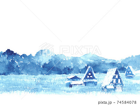 白川郷の合掌造りの写真 イラスト素材 Gf ペイレスイメージズ 水彩画 風景 白川郷 イラスト